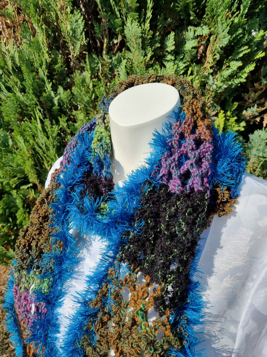 Schal aus meliertem Bouclégarn, handgehäkelt