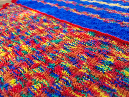 Steckschal multicolor nach historischem Muster, handgestrickt