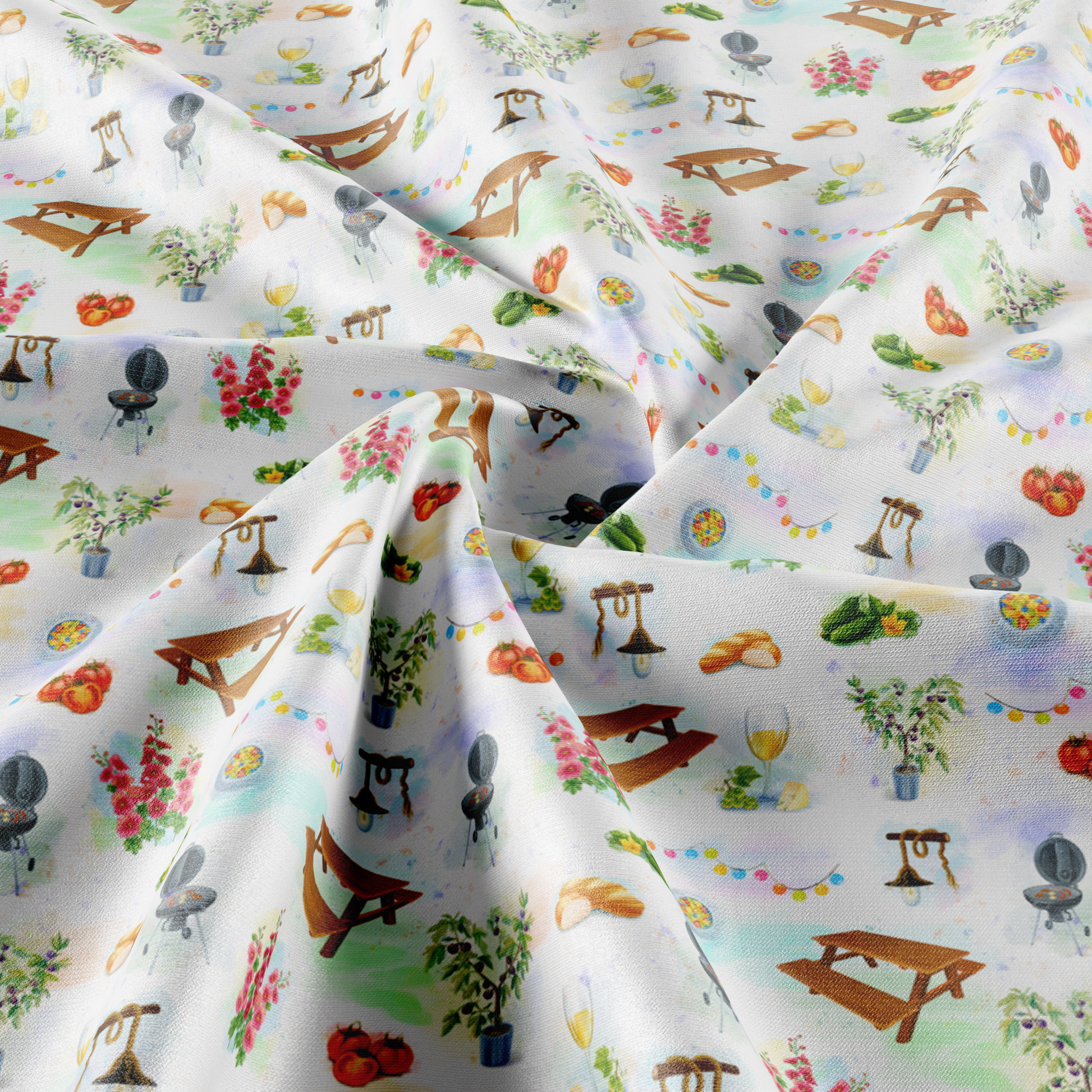 0,5 m, Stoff, Satin, Bio-Baumwolle, 100 % Baumwollanteil, 140 g / qm, Sommer-/Grillparty-Muster, aus Öko-Tex-zertifizierten Materialien