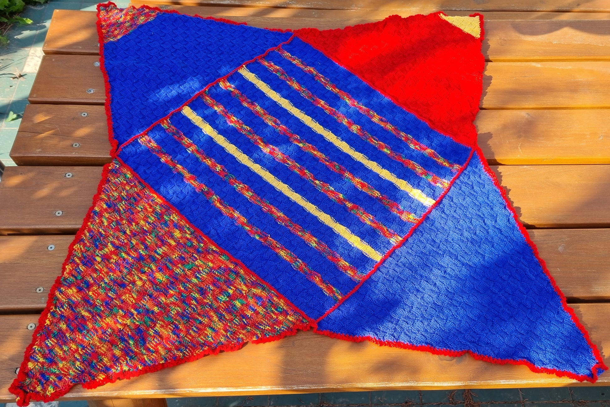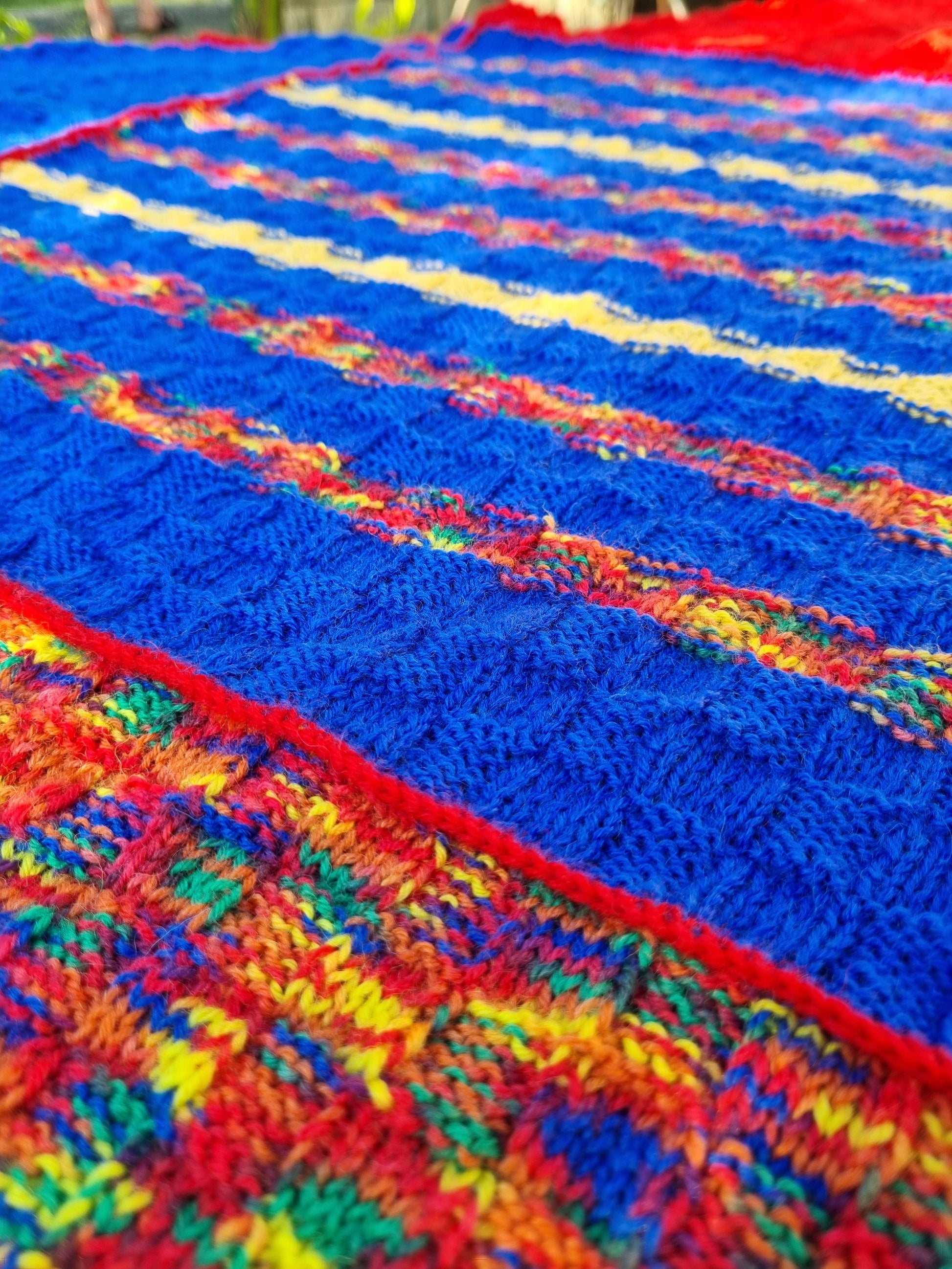 Zipfeldecke, handgestrickt in Hildesheim aus Multicolor-Qualitätssockengarn 4-fädig;