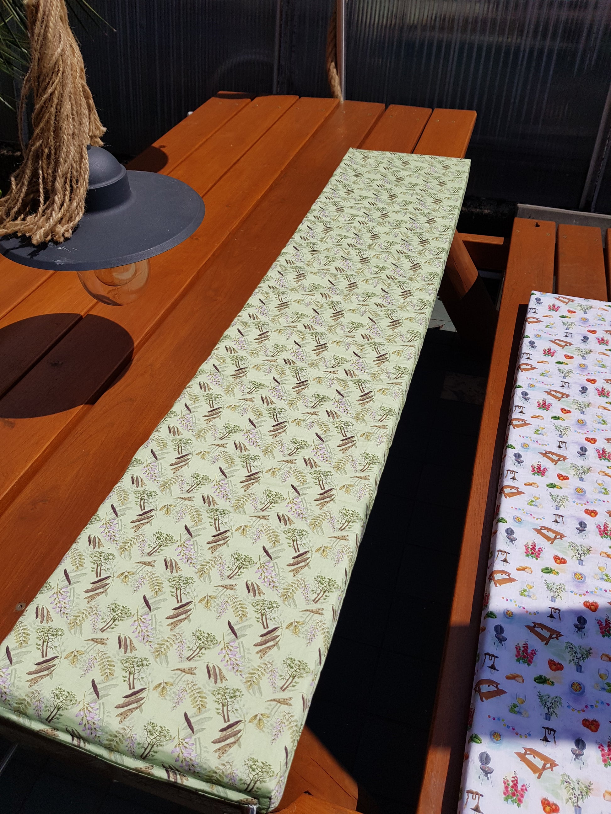 Bankauflage, Sitzpolster, Sitzkissen, 147 x 30 x 4 cm, Bio-Baumwolle, 140 g / qm, Satin, Robinien-Muster