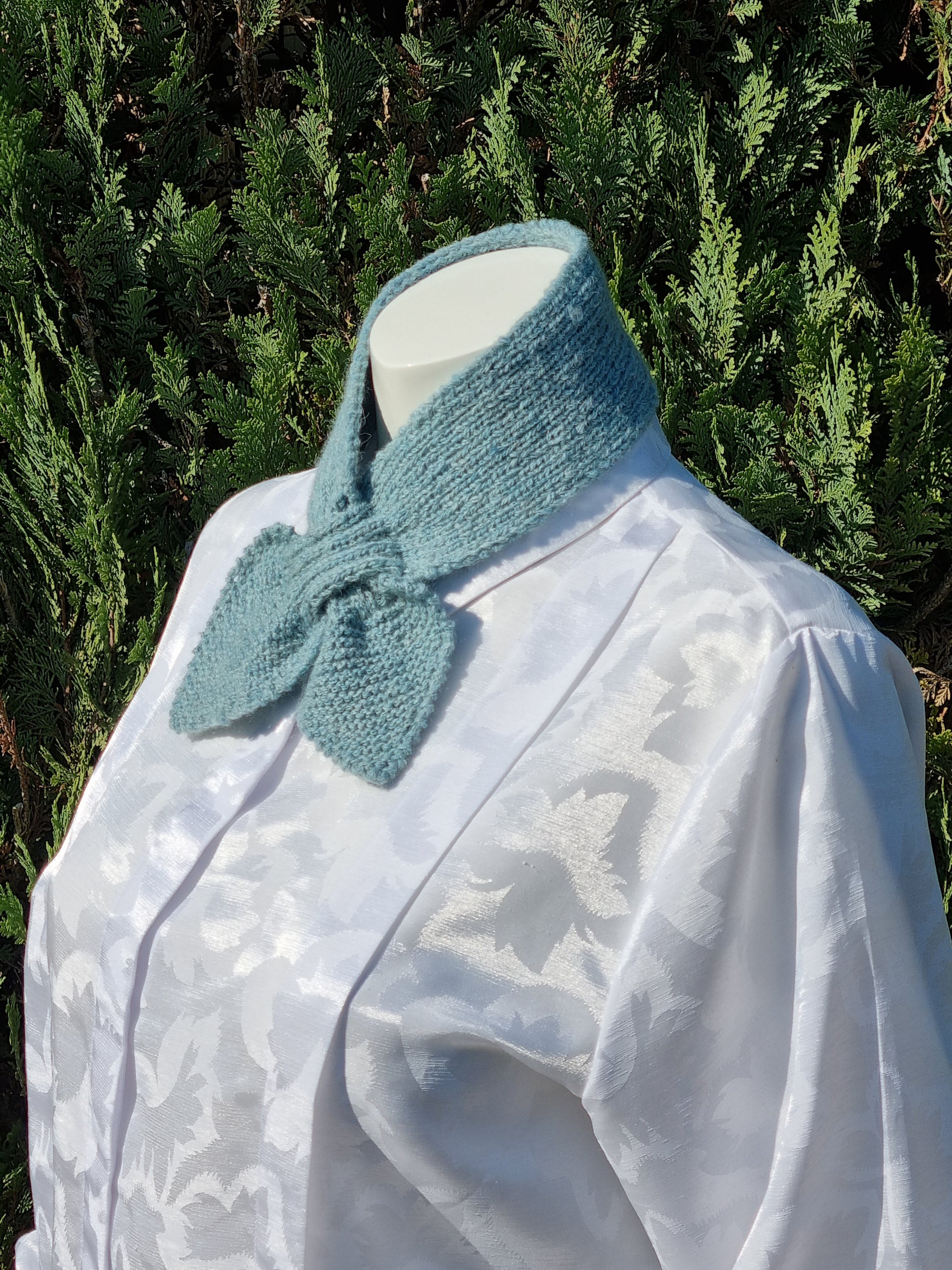 Steckschal nach historischem Muster, handgestrickt, schilfgrün-melange mit Alpaka