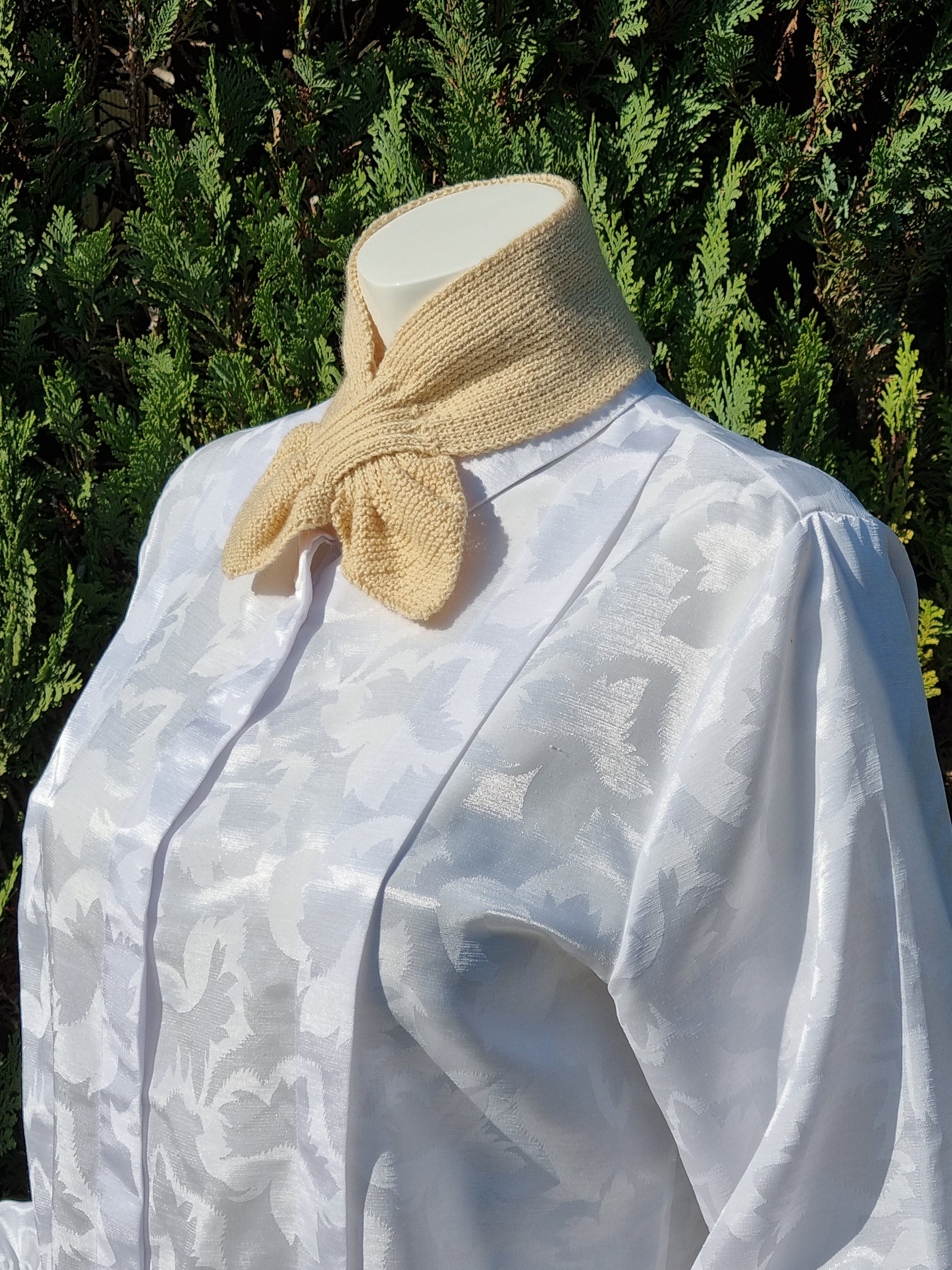 Steckschal maisgelb mit Seidenanteil nach historischem Muster, handgestrickt