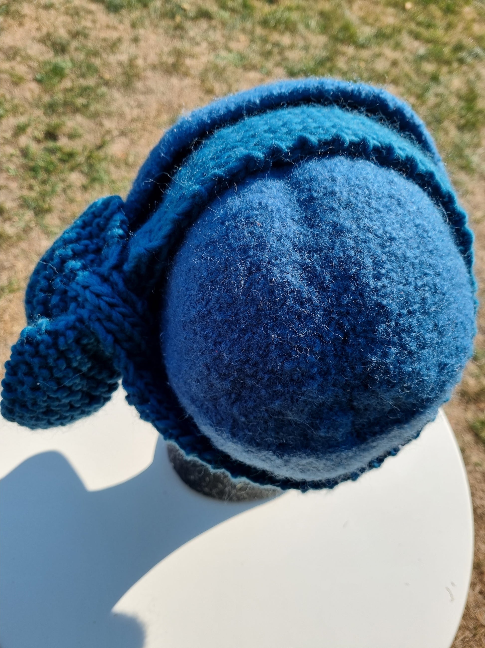 Filzhut in Petrol mit Band, handgestrickt, Gr. 58/59