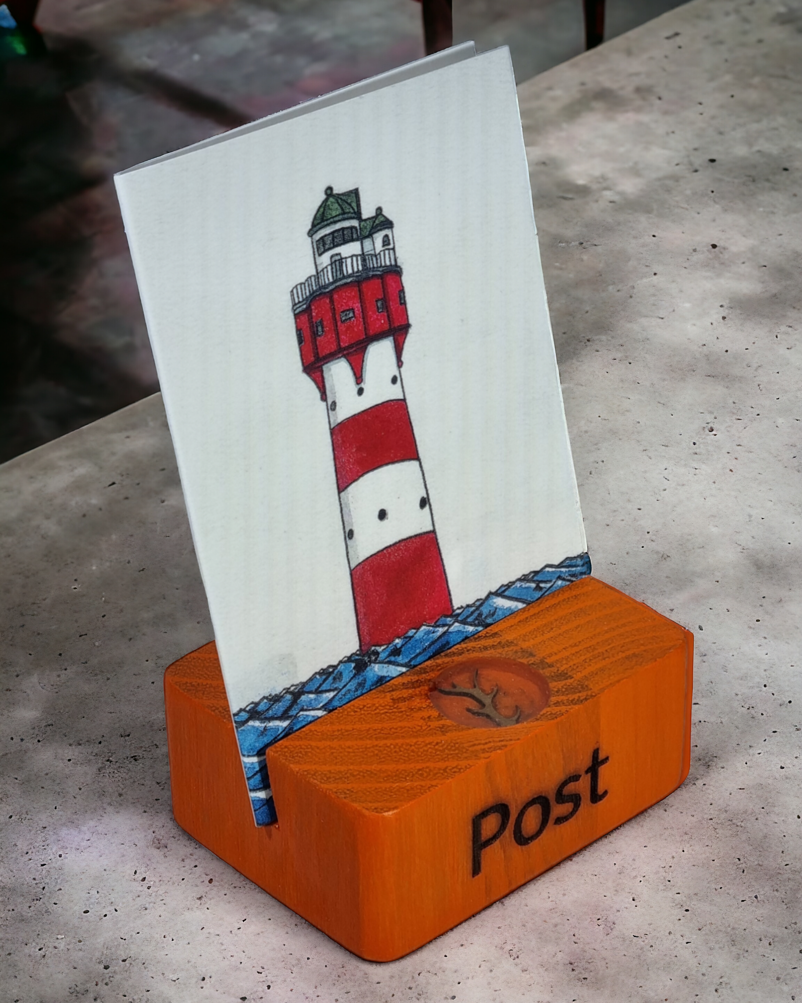 Angeboten werden handgfertigte Kartenhalter aus Robinien-Leimholz in der Himmelsthür-Sonderedition.