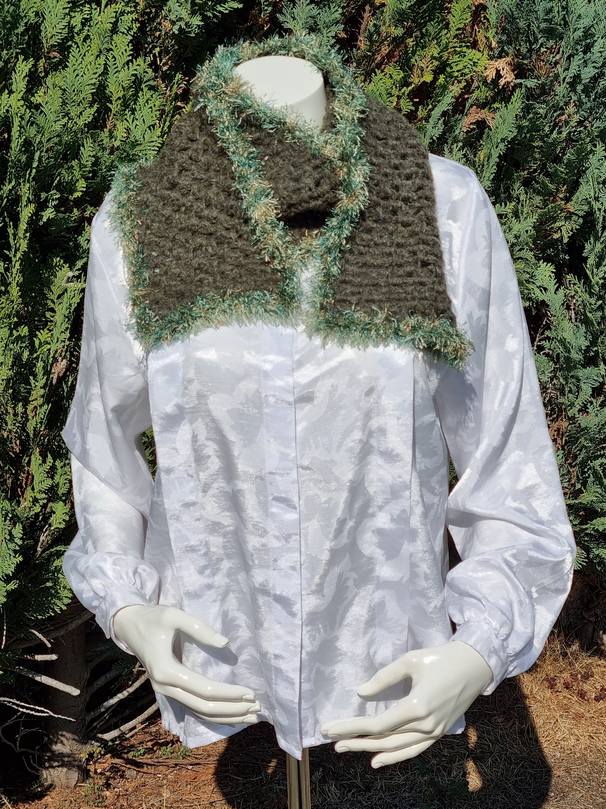 Schal in Oliv, handgehäkelt