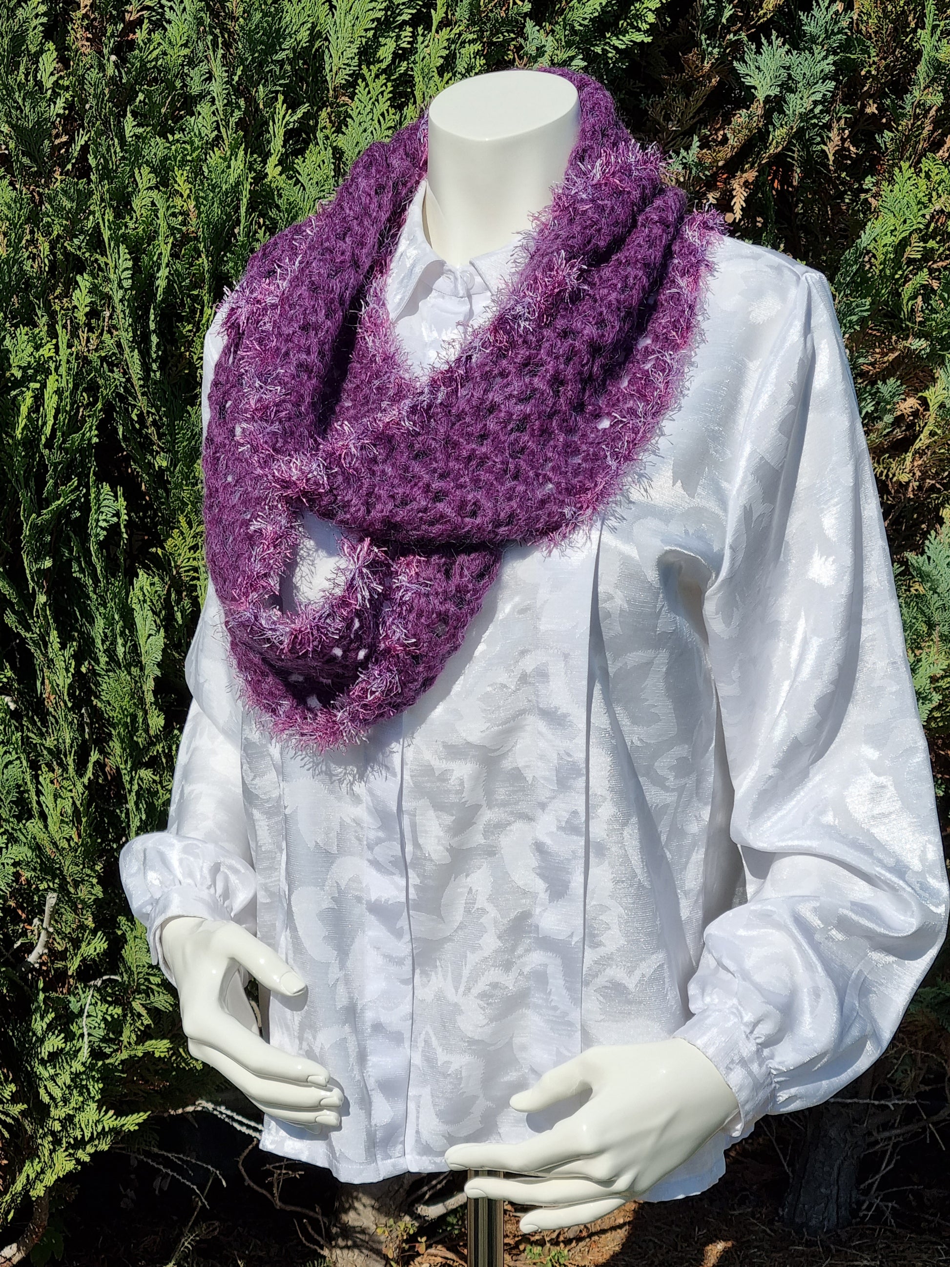 Langer Loop in Violett, handgehäkelt